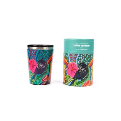 Double walled stainless steel coffee tumbler covered with NZ artist designs 12oz / 354ml